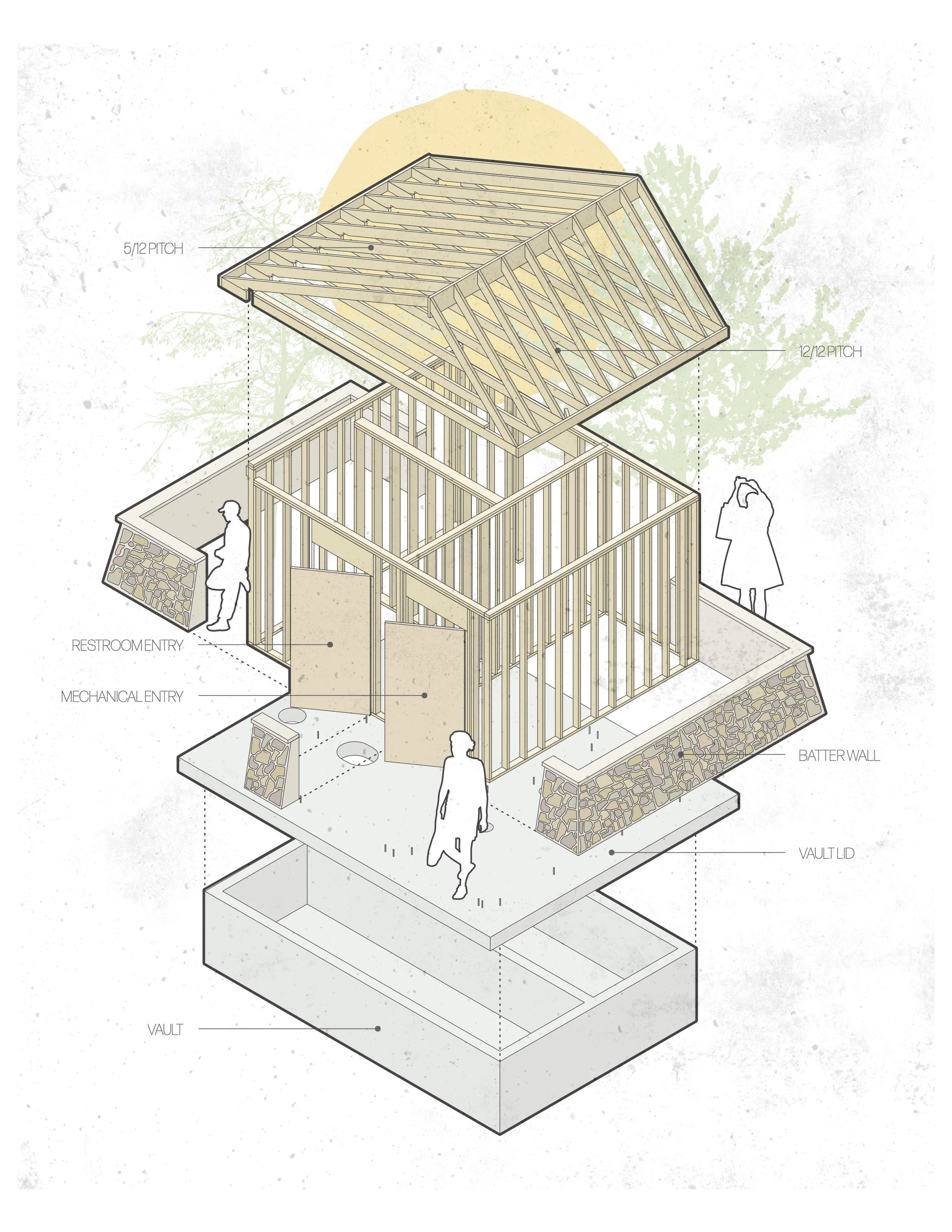 We aim to provide affordability in mountain communities that addresses seasonal housing shortages, rising rental rates, and other unique features that plague the everyday worker in Colorado’s resort communities. This is accomplished by integrating affordability within a resilient, passive design that promotes simplicity. This simplicity allows for a low maintenance form that is inherently low cost because of the fluid integration of active systems and passive design decisions. The active solar energy generation is paired with an efficient building envelope, an interior greenhouse for temperature regulation and humidity control, orientation that utilizes solar gain, solar thermal heating that is dispersed through radiant floors, and ventilation that utilizes heat recovery techniques and provides personal levels of comfort with operable windows. In addition, the form’s simplicity is meant to achieve a level of replicability and adjustability to fit the needs of unrelated roommates as well as families. The multiple configurations of the mechanical “elbow” allow for adaptation to site conditions and the wet systems are grouped along the northern wall to achieve efficiency in construction and maintenance.